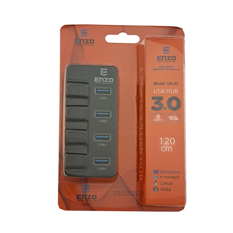 - سازگاری گسترده (Plug & Play): مانند سایر محصولات ENZO، این هاب نیز با اکثر سیستمعاملهای رایج از جمله Windows، Mac، Linux و حتی Vista سازگار است. قابلیت Plug & Play به این معنی است که نیازی به نصب درایورهای پیچیده نیست و به محض اتصال، آماده استفاده است.
